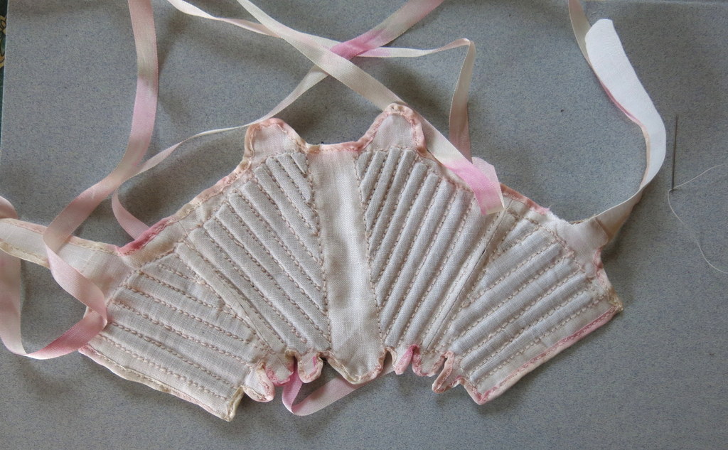 …and the linen channelled…busk inserted down a pocket at the centre front, and “Whalebones” stitched in at angles.