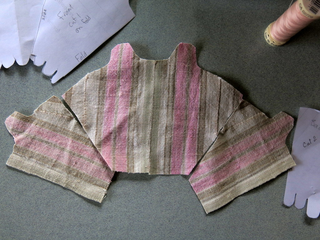 The pair of Lady Frances’s Bodies that I made last month was not quite right…a little small, a little limp and they didn’t give me joy.  So on to #2, this time with an excellent reference book and a scrap of a linen traycloth…