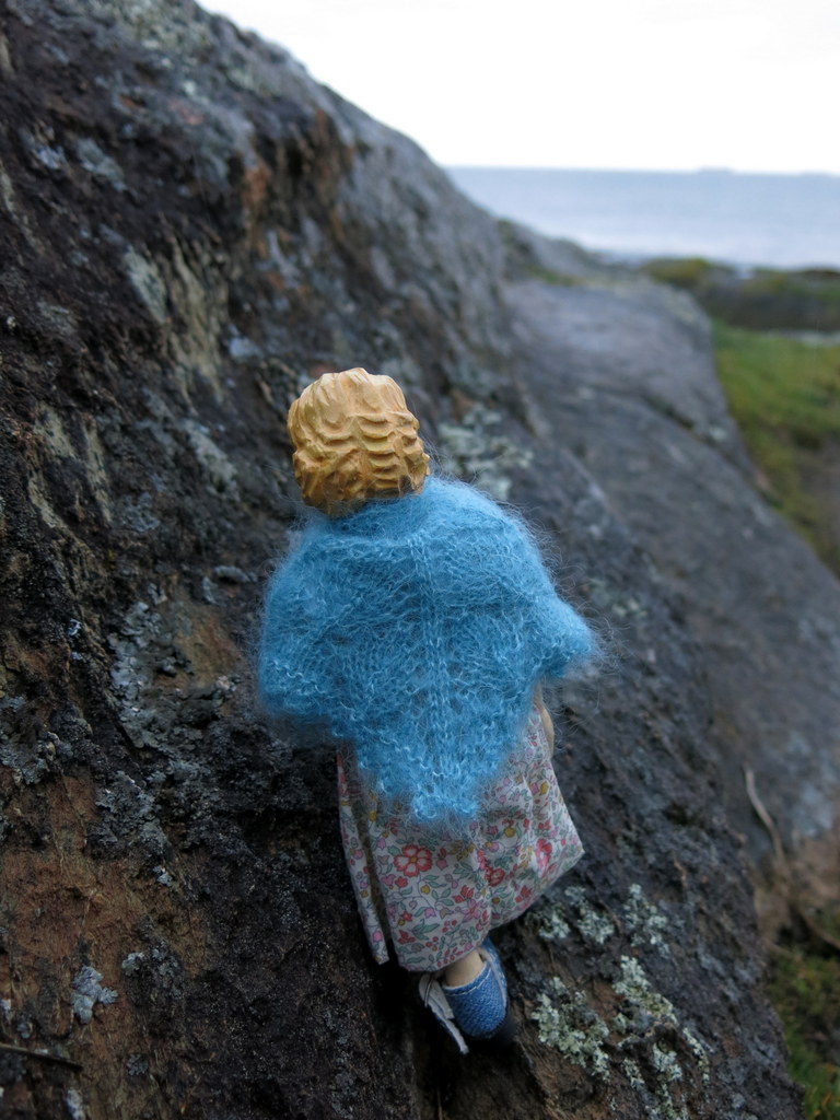 When I made Henrietta, I thought she would have a fondness for pink, like her namesake Dr. Bonnie Henry…but she seems to gravitate to blue. That is one of our favourite knitted shawl patterns!