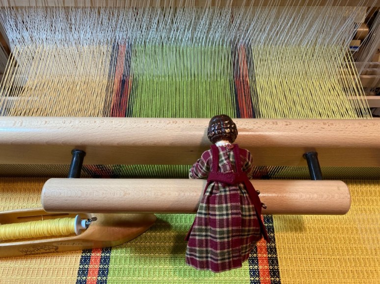 We sure have fun, and love the results of weaving – thanks to my kind friend who has been sharing her warp with me!