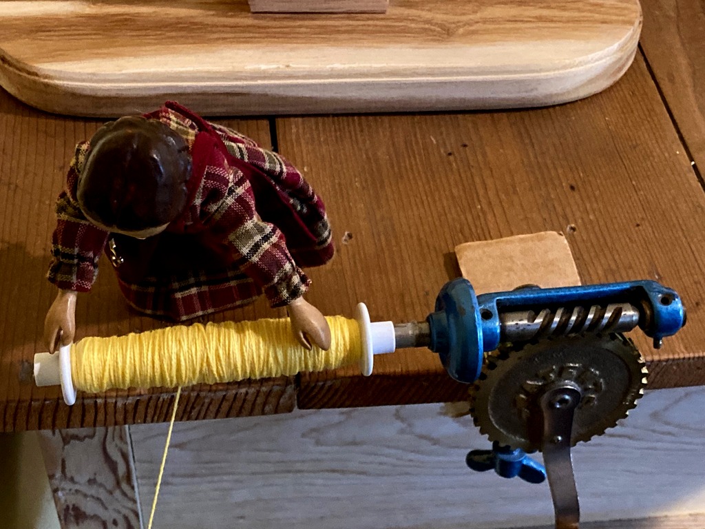 …she is just the right size to help wind the bobbins;