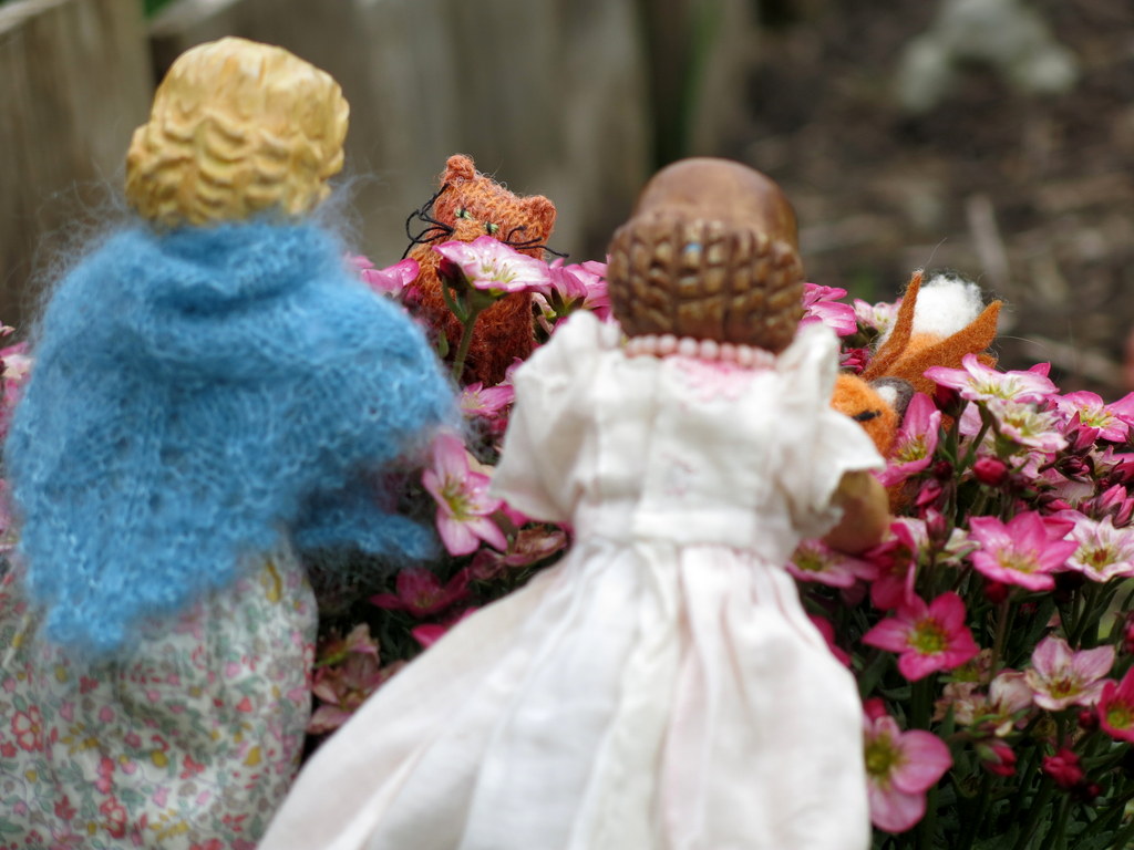2. Sweet! What a pair of delightful little girls and their wonderful furry friends. A walk in the garden with friends..what could be better.