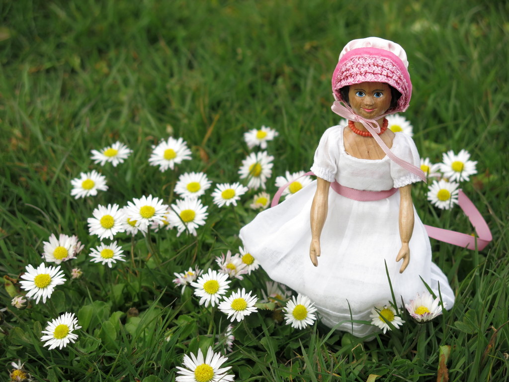 …and I added a pink satin crown and a velvet ribbon, so it would look Jane Austen-ish.