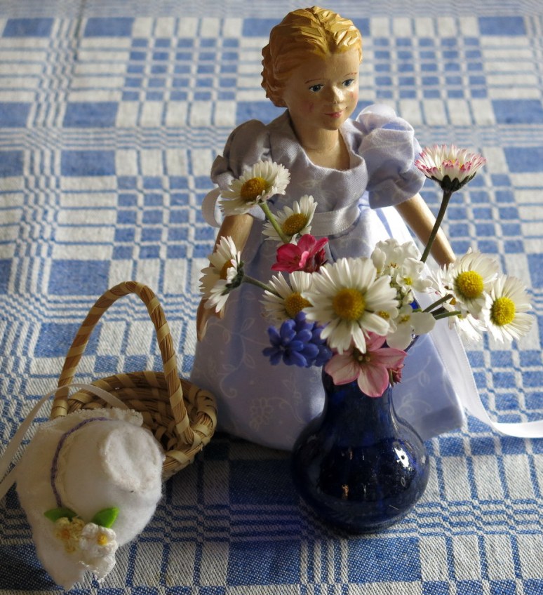 The Hitty sized vase and real flowers are so beautiful .I am sure your Hitty’s appreciate them.