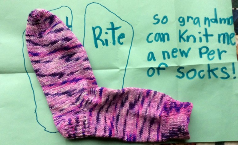 ...starting with these specially requested socks with purple tabby-cat yarn selected by a certain young human)…