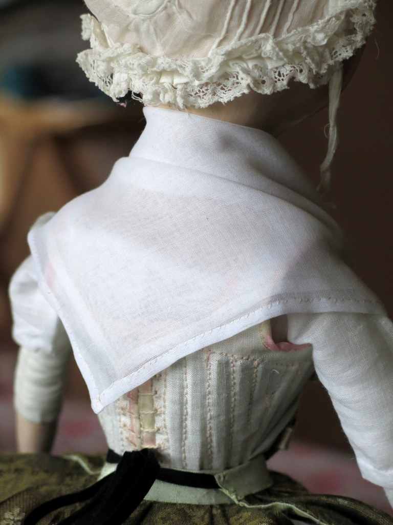 Lady Frances’s  ensemble is coming along. She now has a Fichu wrapped over her shoulders for modesty and warmth…