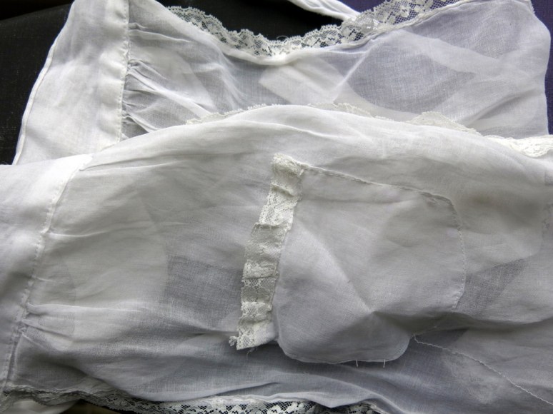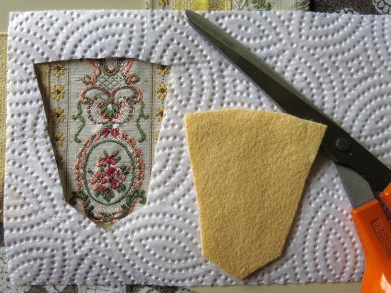 It is interlined with a scrap of wool felt, and lined with yellow silk from Lady Frances’s trunk.