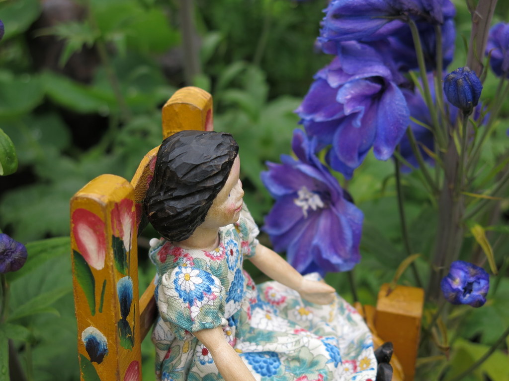 Spring/summer is trying to manifest itself here, despite the very cool weather…many of the flowers are enjoying the weather, though some wish it weren’t quite so damp (and the humans mostly fall in that category too). The cheerful flower-viewing chair is exactly the perfect thing to cheer up a dampened enthusiasm, or a soggy countenance!