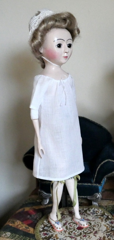 1 Cotton shift made by Lady Frances’s first mantua-maker. Cotton stockings, embroidered garters.
