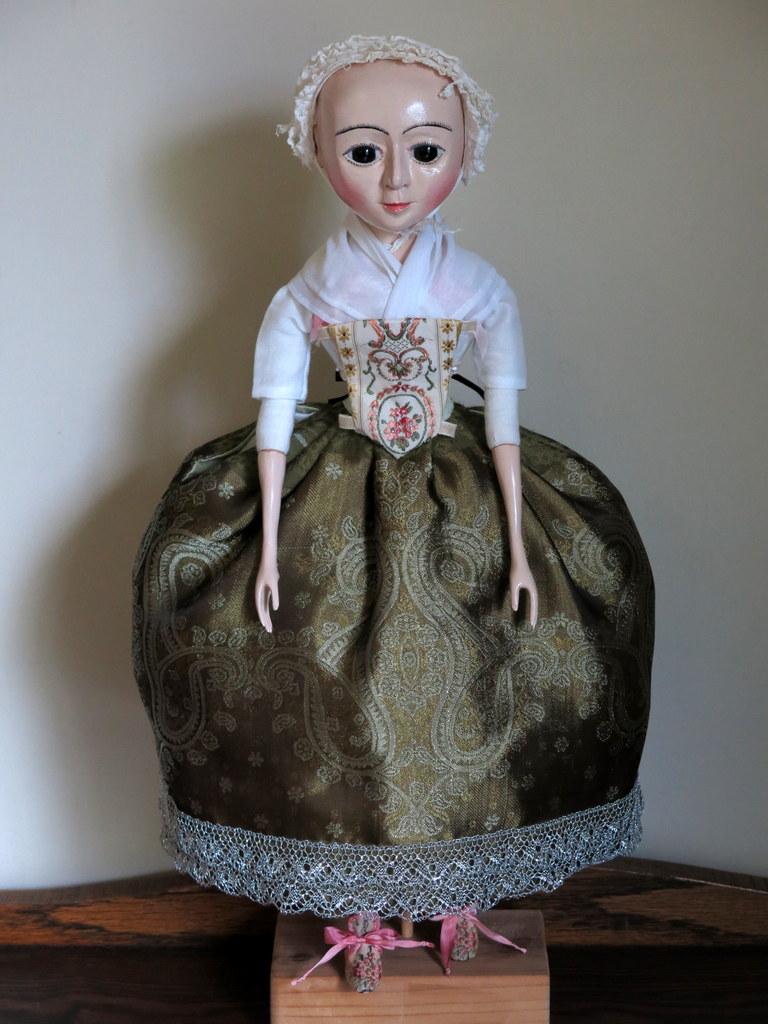 9 Gown Petticoat made from brocade ends of “Pashmina Shawl”, lined with silk, and edged with silver lace.