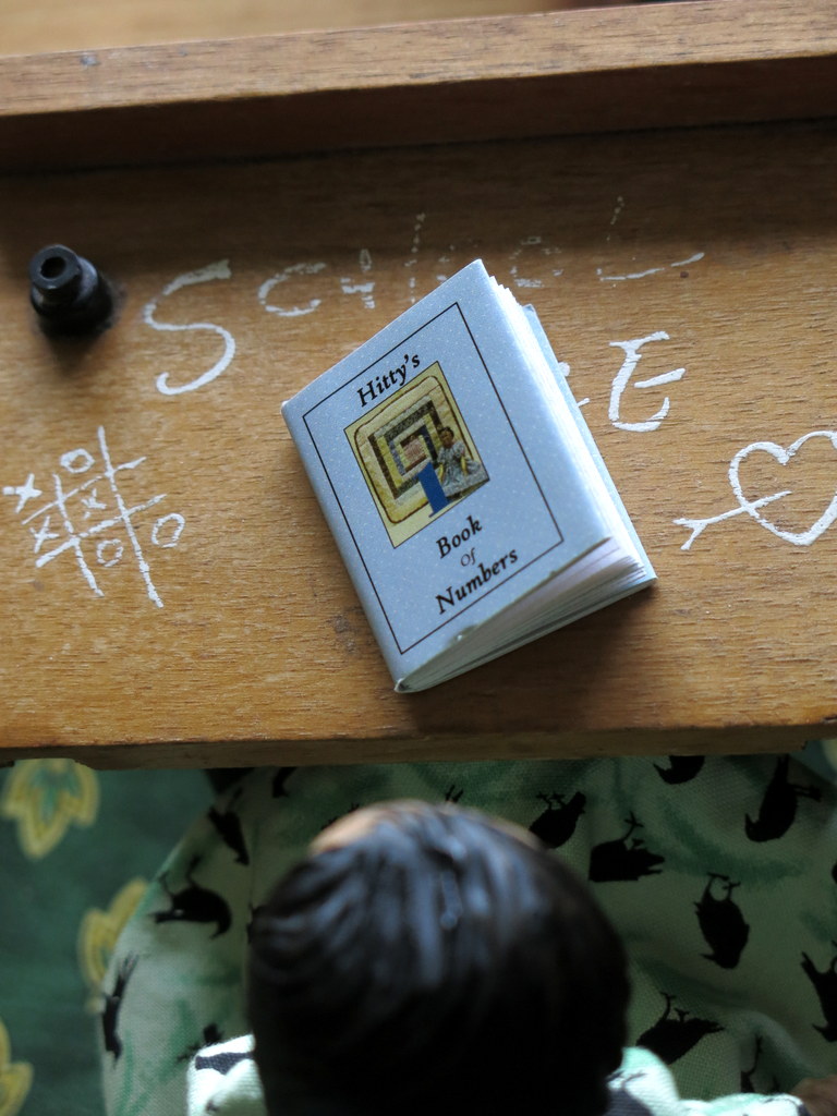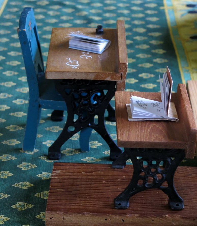 love it when the youngest human tells a story. Those desks are great as are the tiny books.