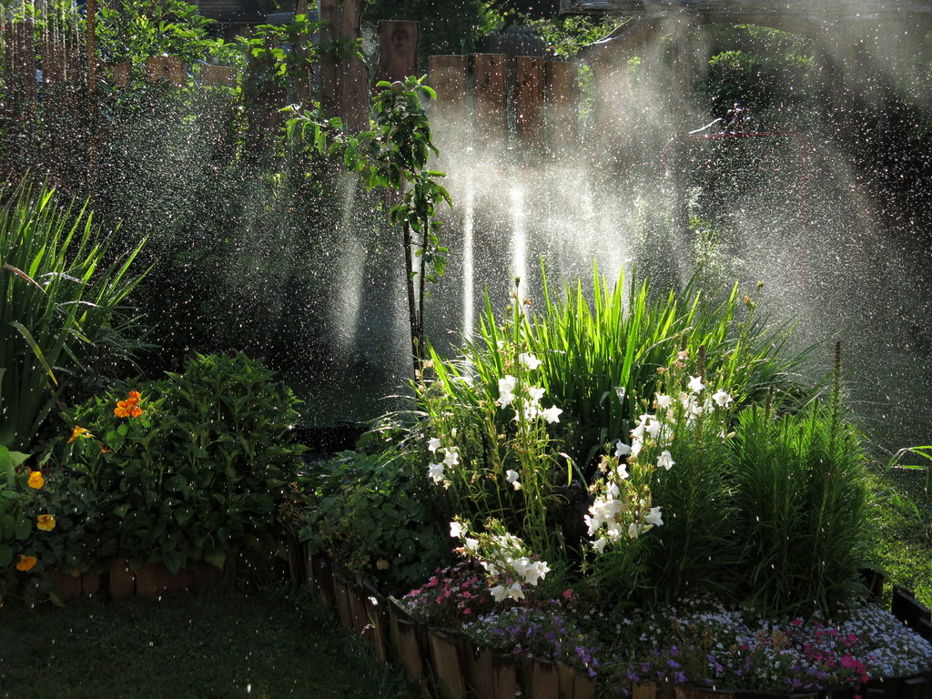 Because of watering restrictions, we can only use the sprinkler at certain times on Sundays and Wednesdays – the flowers love Sunday mornings!