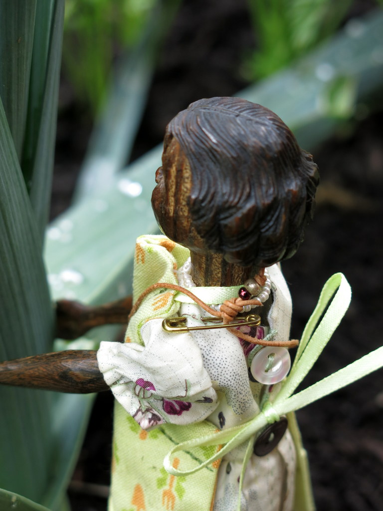 The morning light through the sprinkler droplets was otherworldly this morning – we did our best to capture some of the essence! Perdita is in her element – all those greens make her wood happy!