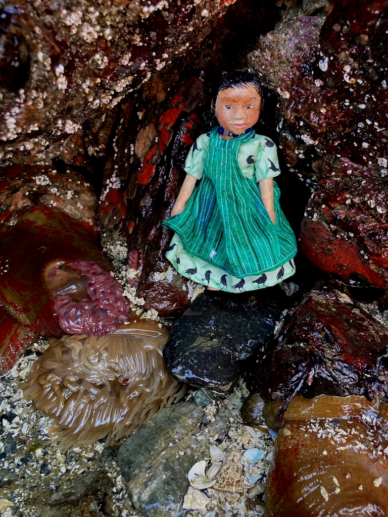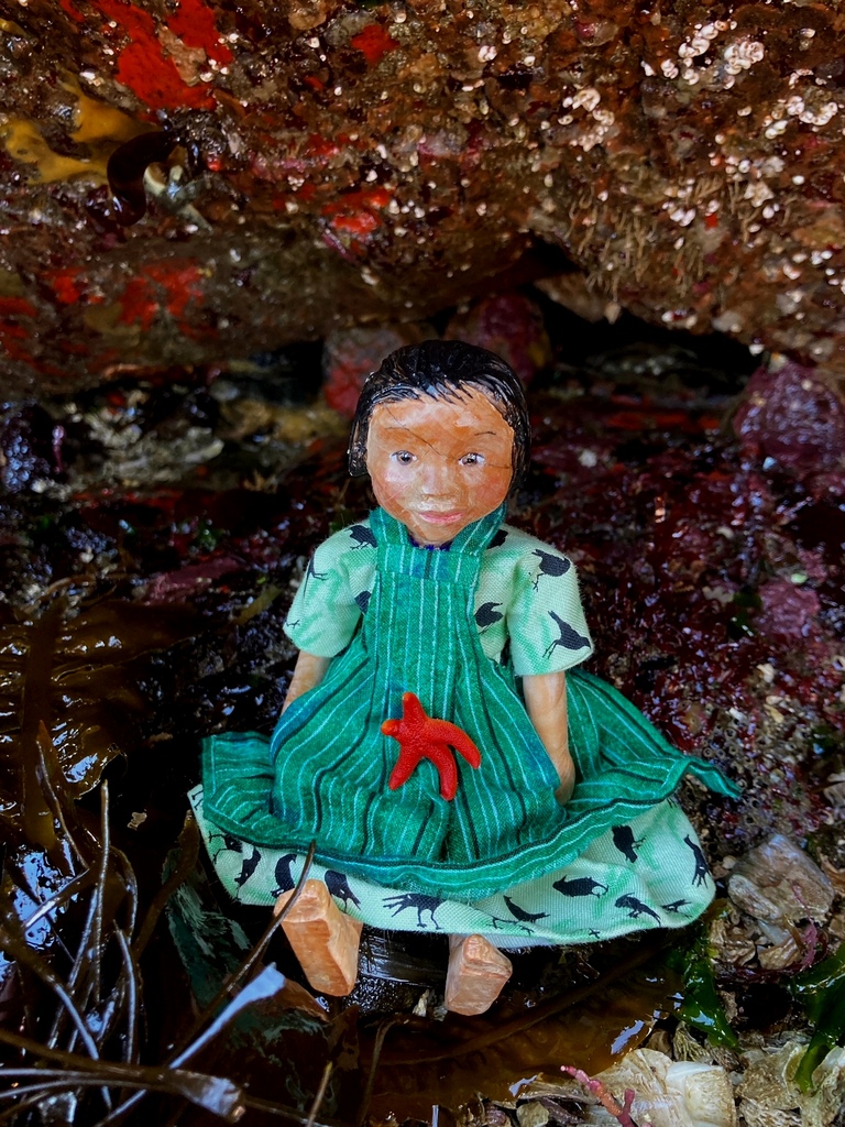 • We do live in a marvellous place – we are so lucky! The Quimper Hittys couldn’t help remembering the Original Hitty’s story in the book, where she reminisces about some quite amazing adventures, floating in the tides, rescued from a tide pool and living as a castaway on the beach for a while…