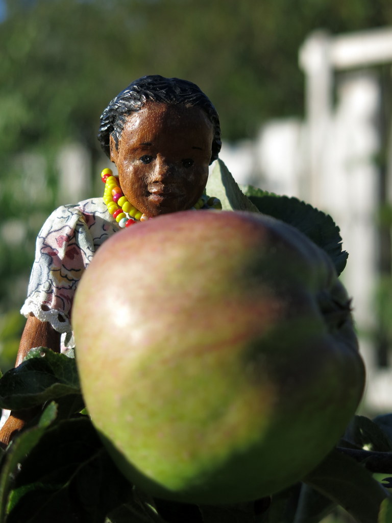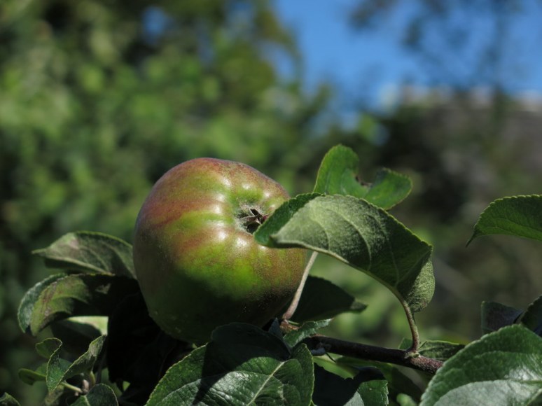 It does look like a so-called “Heritage Tomato”, but I assure you, it is an apple, and if it can hang on another month or so, we’ll pick it and eat it ceremonially! Now you mention that about the crocosmia nectar, our Favourite Photographer recalls doing the same! I shall have to sample, and introduce our young human to the delights of hummingbirding!