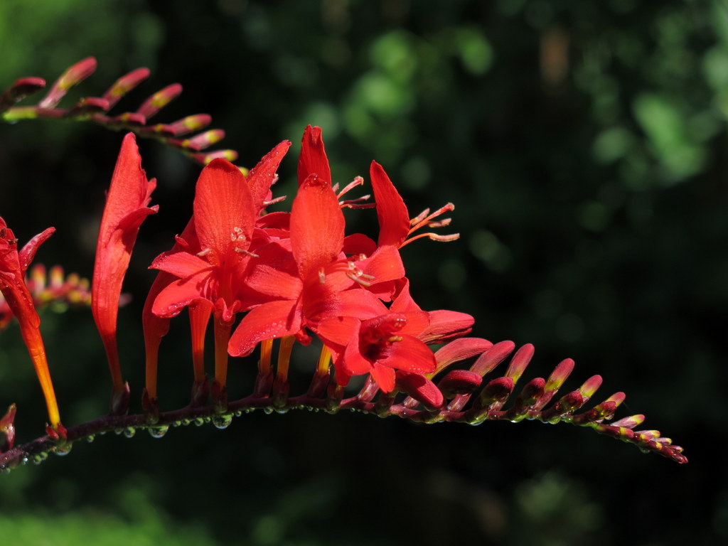 That apple looks like a green zebra tomato! And as a small child, I used to pull the flowers off crocosmia to suck the nectar from the base – until my mother caught me!