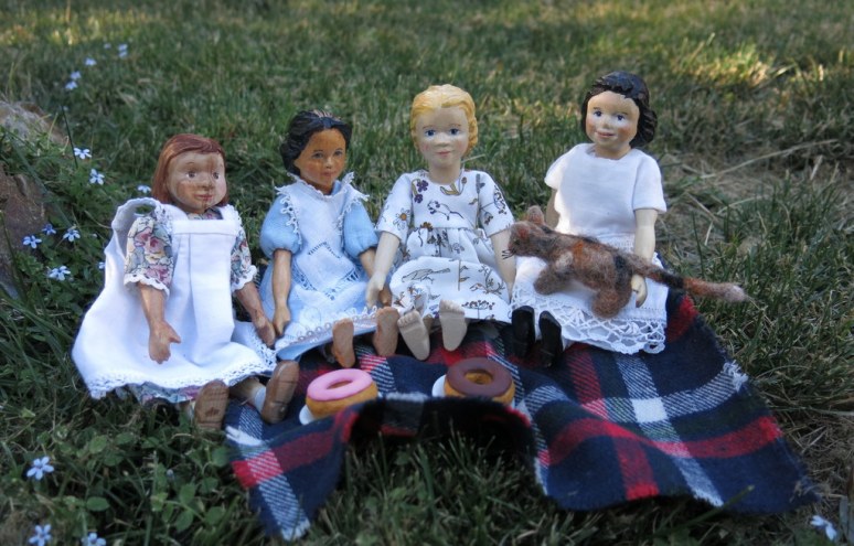 1. We love this time of summer also. The mornings are already a wee bit cooler. Love seeings the girls out and about. Henrietta’s print dress fabric is precious.