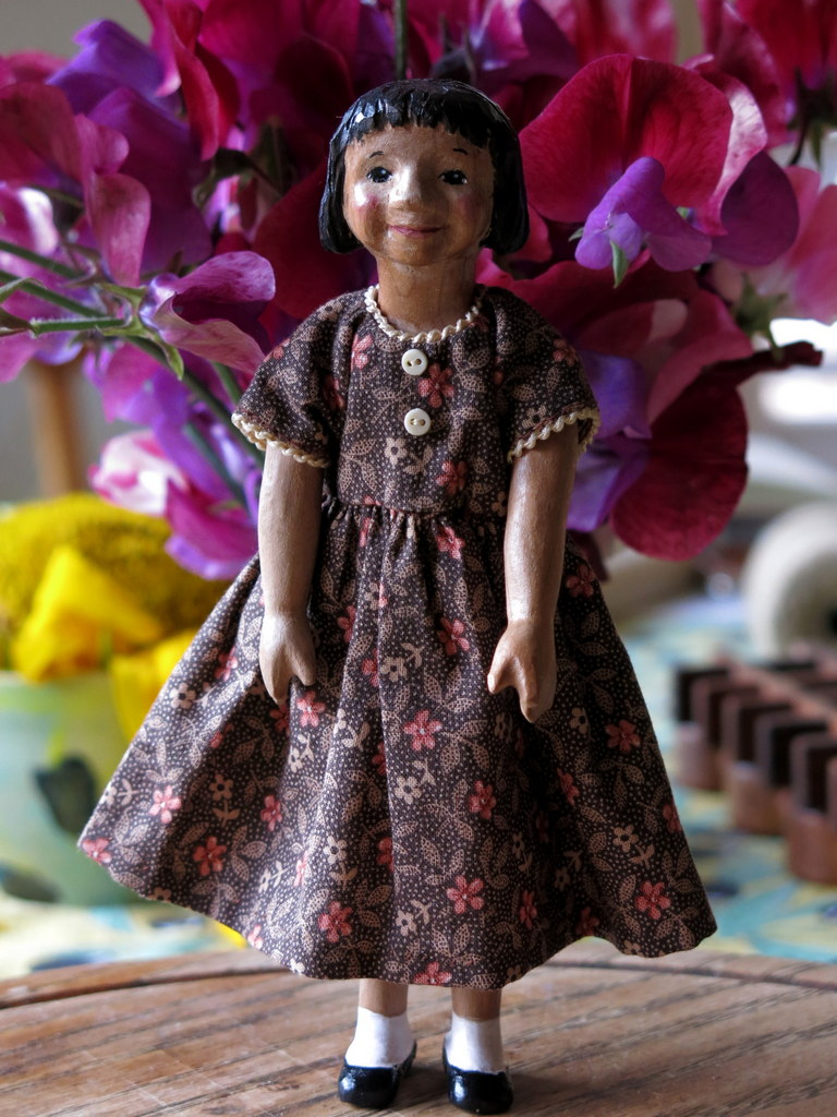 1. Oh, heavens!!!!! Such a dead little soul???? What a horrible mind my Kindle has, it changes words at will. She a DEAR little soul, no matter what this spiteful, clever-clogs machine says. I love her wood-complexion colour.