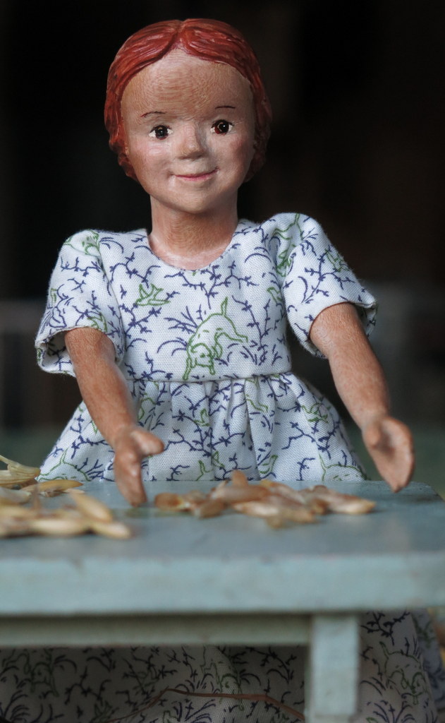 I think she’s got a hard job ahead of her with a rolling pin; outside Hitty world, they first steam the grain to make it soft, then roll the steamed grains between large steel rollers to achieve rolled oats. Such a job!