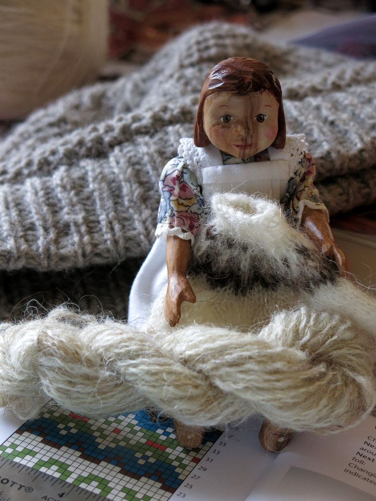 …and a kind relation has carded and spun the Icelandic wool we found ten years ago…(Click here for a link to the post where Constance found the wool in Iceland!)… Abigail also thinks would make a great sweater!