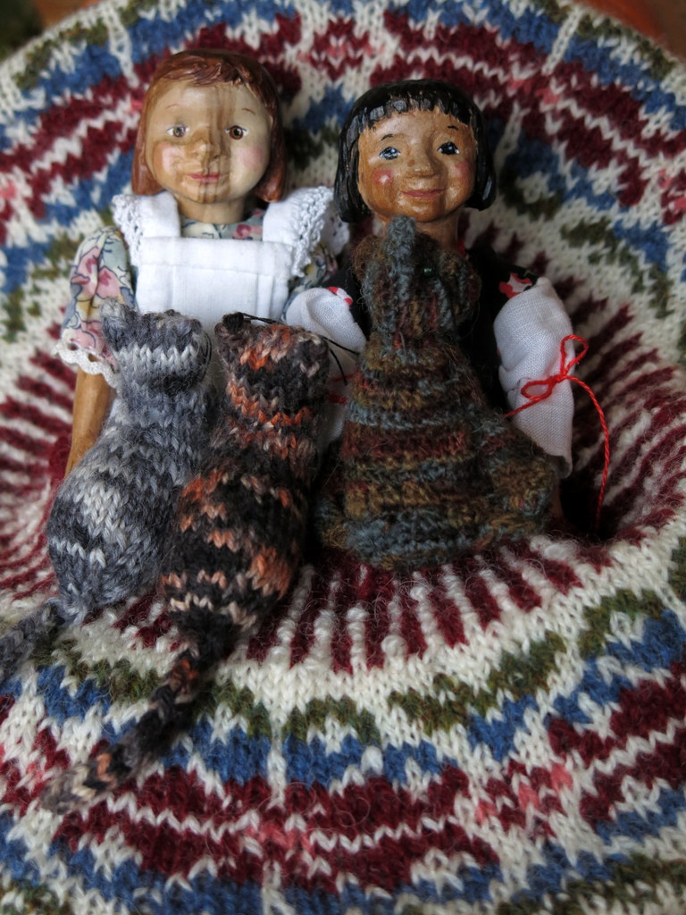 The Quimper Hittys always like my hand-knitted socks. They make good sleeping bags, but only one Hitty can fit inside each sock.