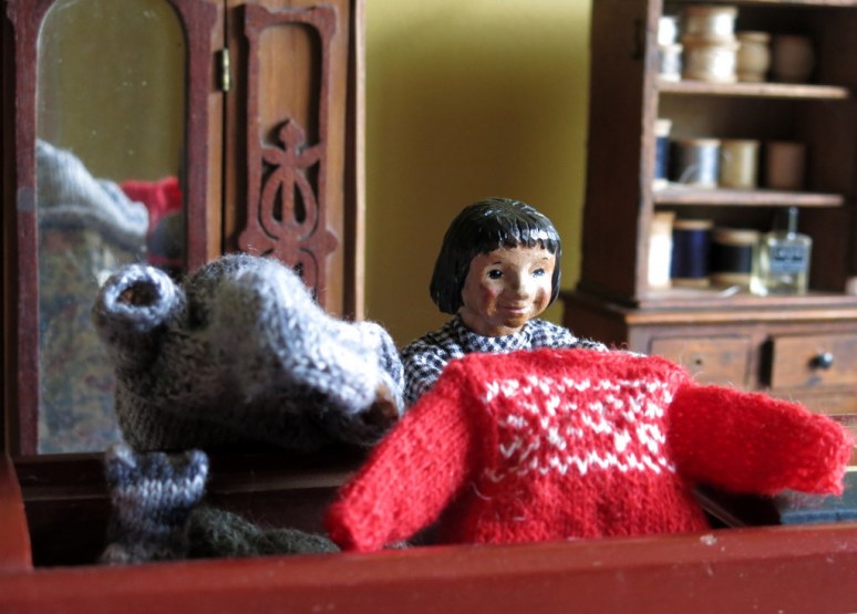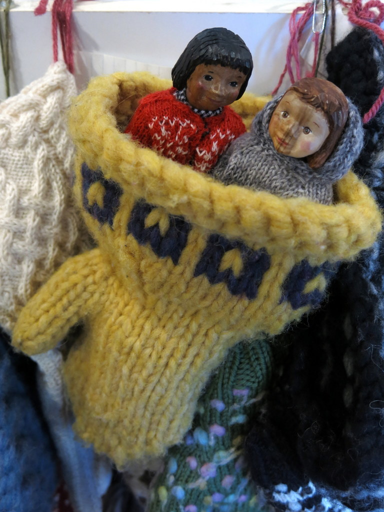 3. That yarn shop looks like heaven if you are a knitting fiend! The two Hittys look lovely and cosy on top, but their little bare legs look a bit chilly to this warm climate person. Could they get some lovely knitted mukluks, or at least some leg warmers?