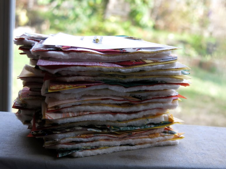 Click Here for her instructions… It was a serendipitous pattern and inspiration for me to use up those precious bits of cloth.