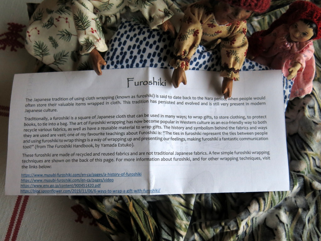…and found another cloth wrapping inside! The wrappings are the present…how wonderful! They came with instructions that show us how to wrap gifts in cloth – a Japanese tradition dating back at least 1200 years!