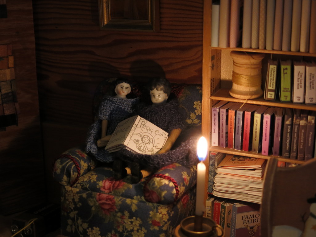 The two little china heads snuggled in the chair and finished the day reading.