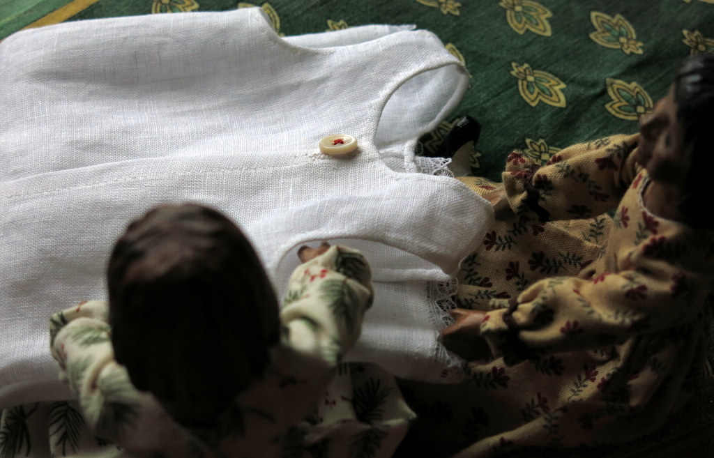 Meanwhile, to make one of my grandmother’s big dolls happy, I altered the sleeves of a dress I made some while ago…