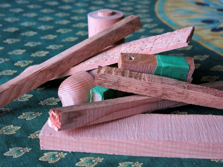 Our favourite photographer (who was on hand while the boardwalk was being built) collected some promising-looking scraps and brought them home to the Hitty cupboard…they were eventually turned on a lathe and cut into doll-blank pieces…