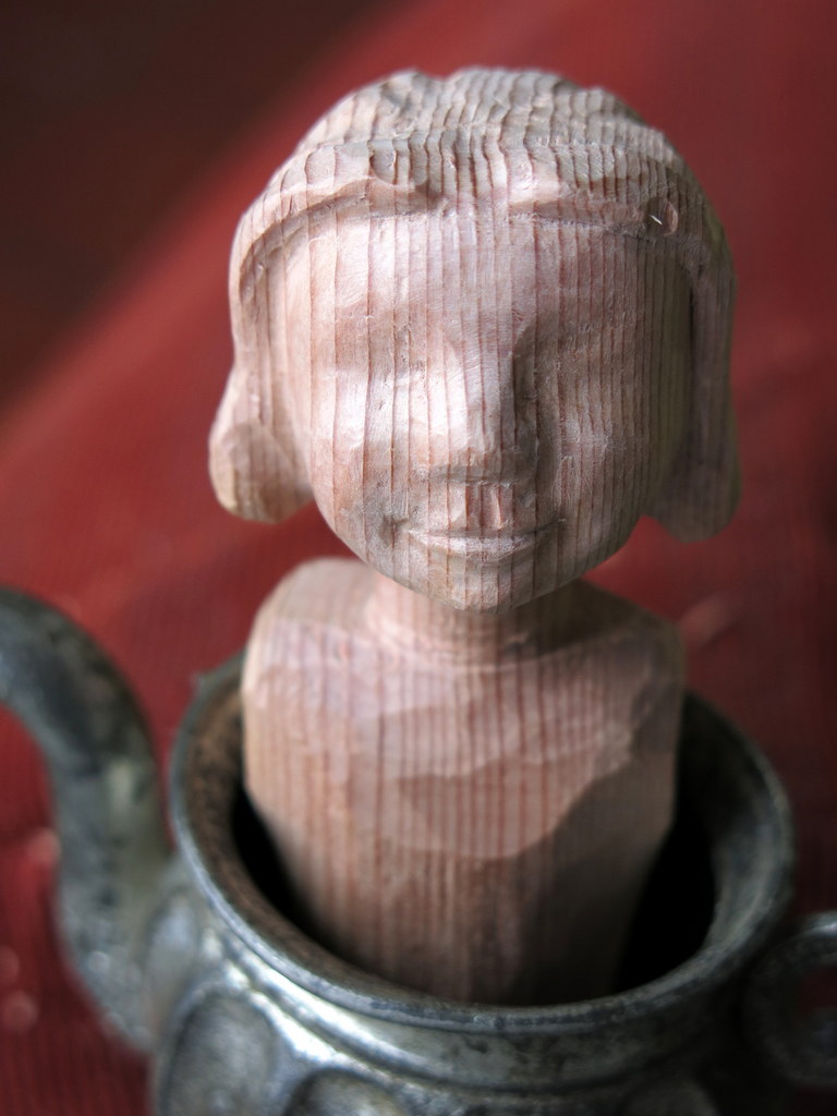 Yes, I don’t think it will be hard to love her! I enjoyed carving her partly because of the colour and grain of the beautiful cedar – it was really aromatic too, though very splitty! We are glad she joined us in the cupboard!