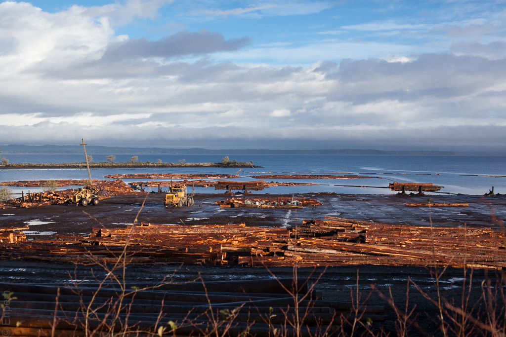 On Haida Gwaii there is a telephone pole mill, where cedar trees are peeled and made ready to be cut into 40, 45, 50 or 55 foot lengths. The offcuts are usually considered scrap, but if they are long enough they can be made into boards…