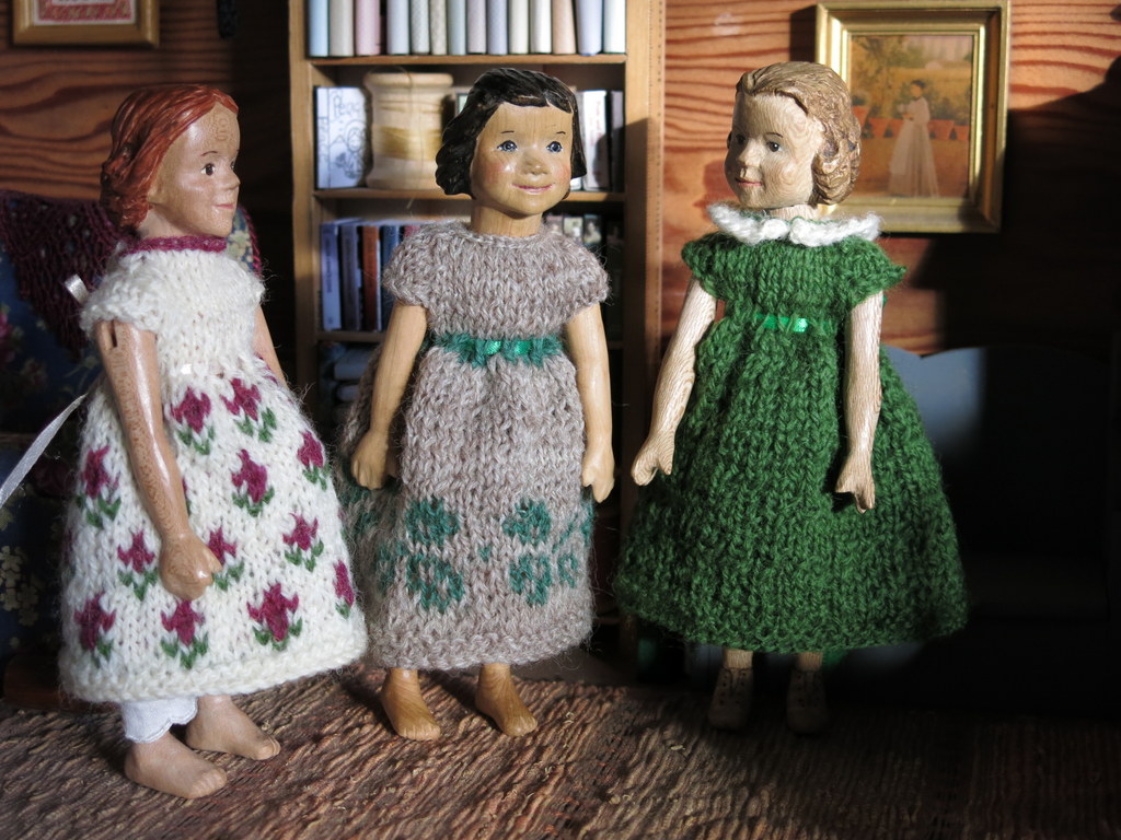 • The three girls just popped their heads up and looked hopeful when I started the project! I was so glad to find these patterns to play with, it took a few iterations, but it was quite a peaceful project, and satisfying to end up with these dresses. I plan to try some of the other designs too.