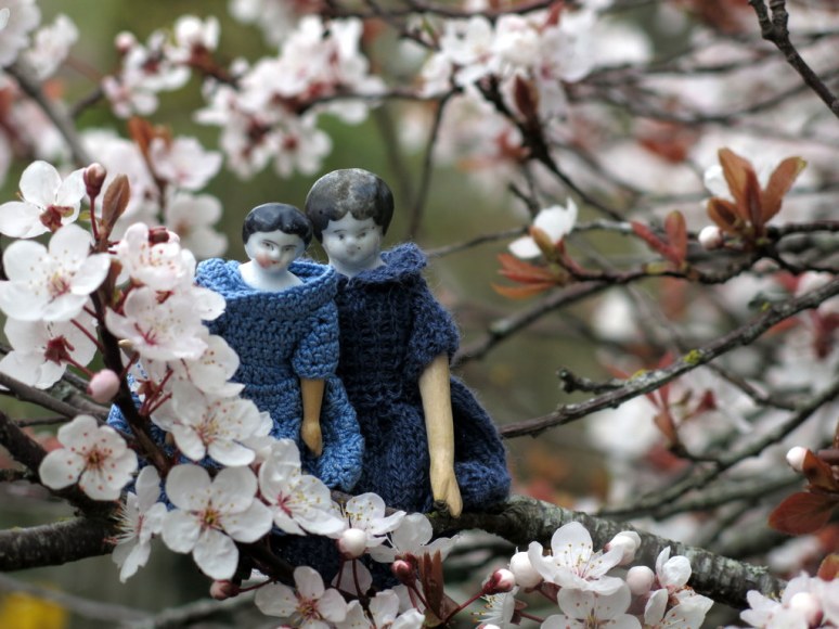 oh what a wonderful garden, so much to see and smell…the little ones are sweet guides to all of the blossoms. love them in their blue frocks.