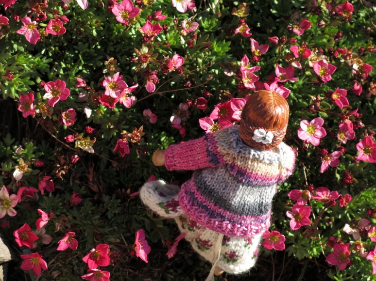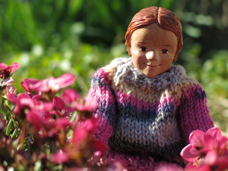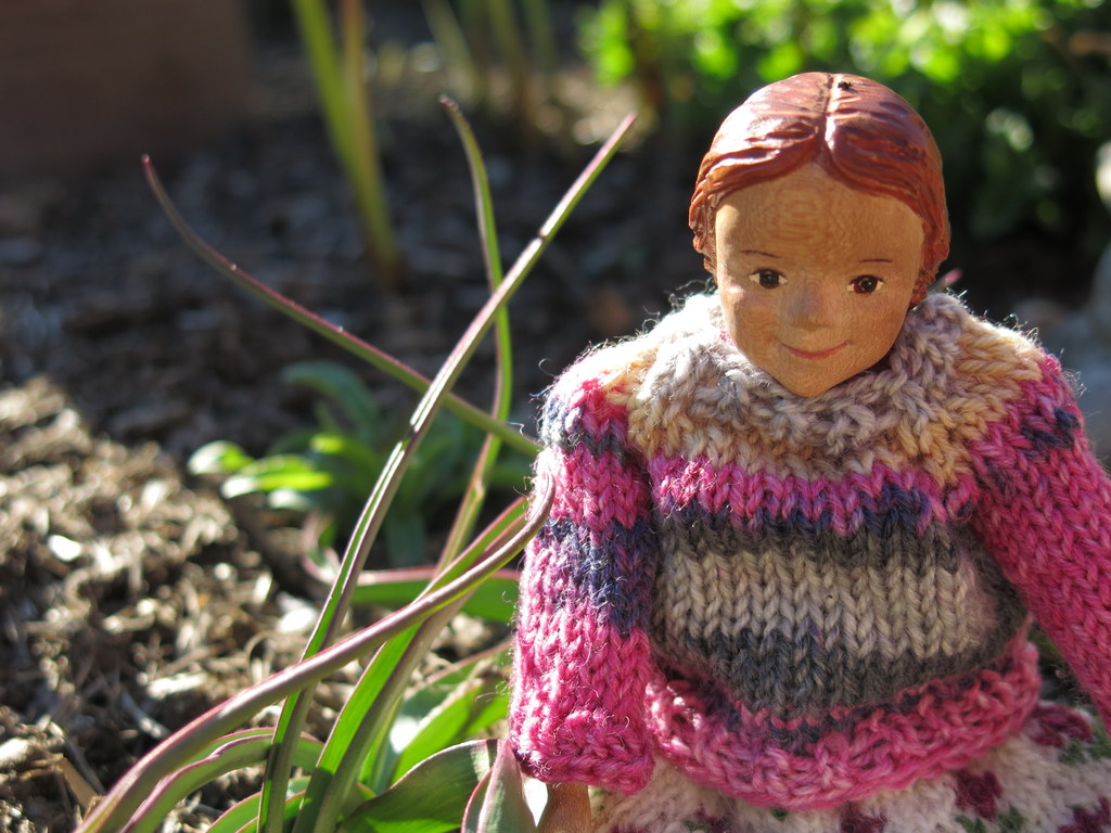 Sunny again today! Floradora was chilly when she went to the garden last time so she wore a thick, comfortable “Mini Sock Yarn Sweater” when she went out this time.