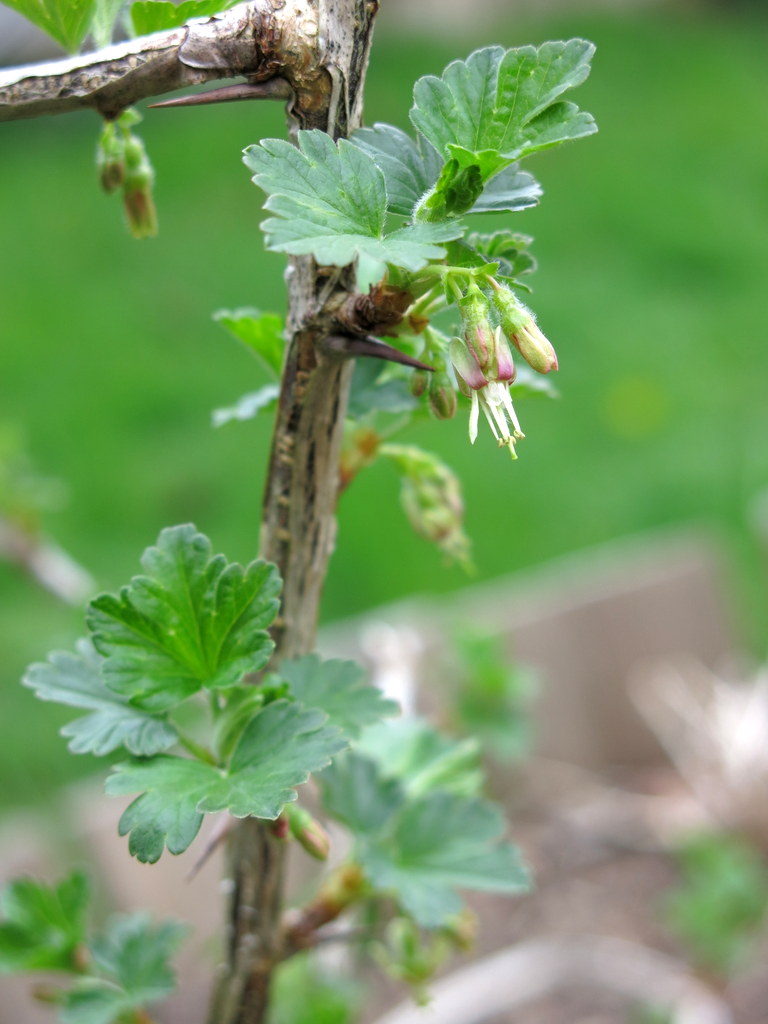 Look! Gooseberry flowers! We are happy to see them, and hope for a few warm days so the insects can visit, pollinate and turn them into berries! Our pruning guide says this third year should be the beginning of substantial berry crops. That would make us so happy!