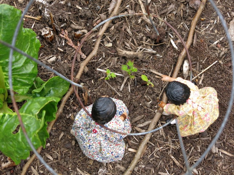 And here is a surprise…we thought we had picked up all the gooseberry twigs after pruning this winter, but a little volunteer has decided to become another gooseberry bush, and if so…only a couple of years till even more berries!!