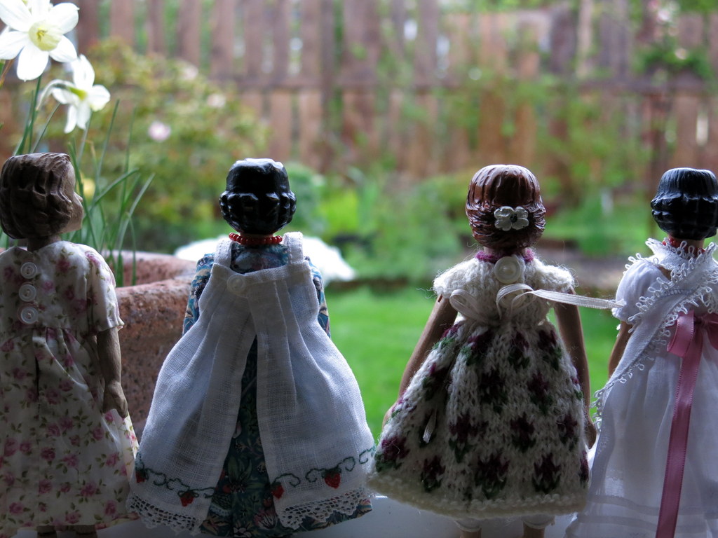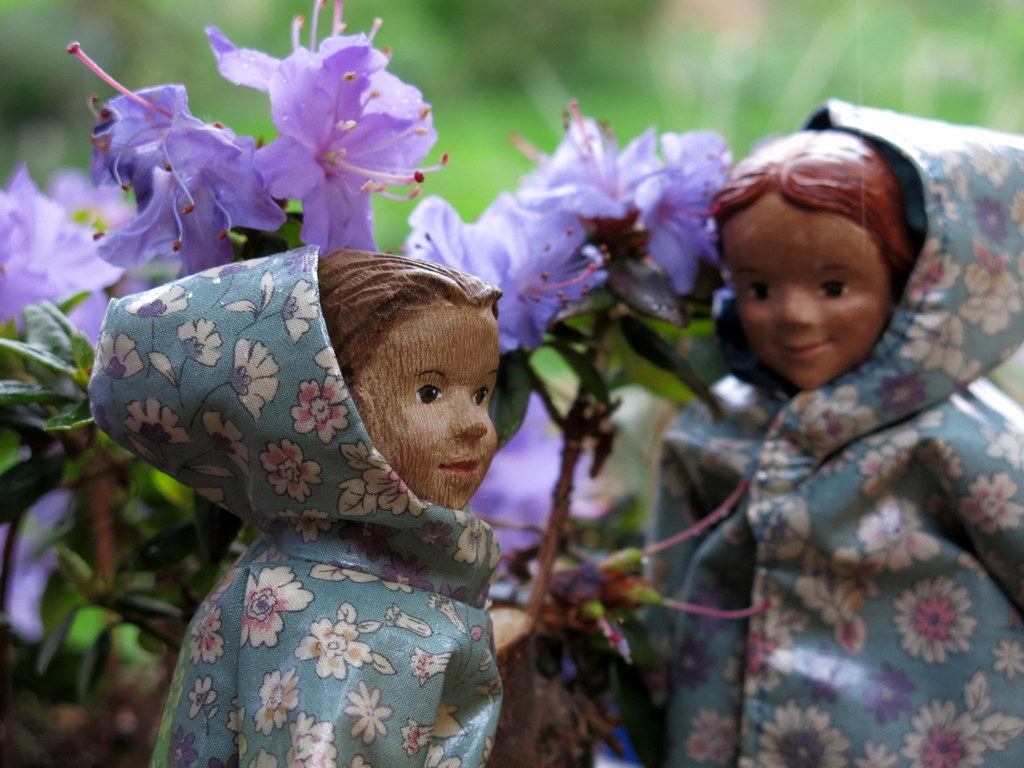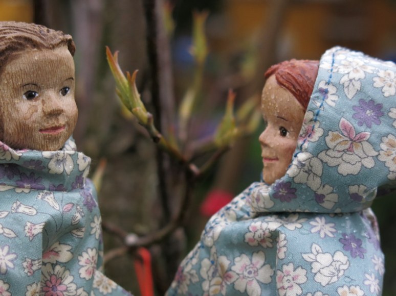 Maybe it is their raincoats that give that impression? Arianell is older by about three or four years I think (I’ve lost track!) and she is carved from Sycamore wood while Floradora is Dogwood.