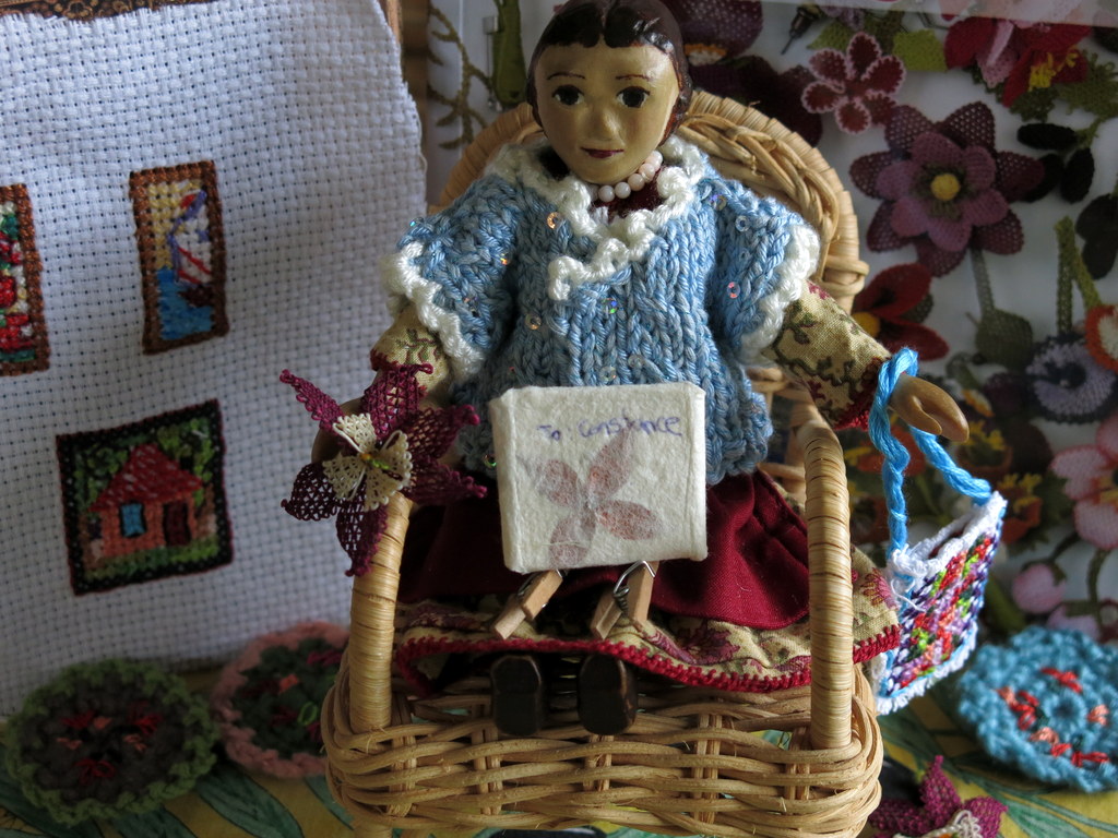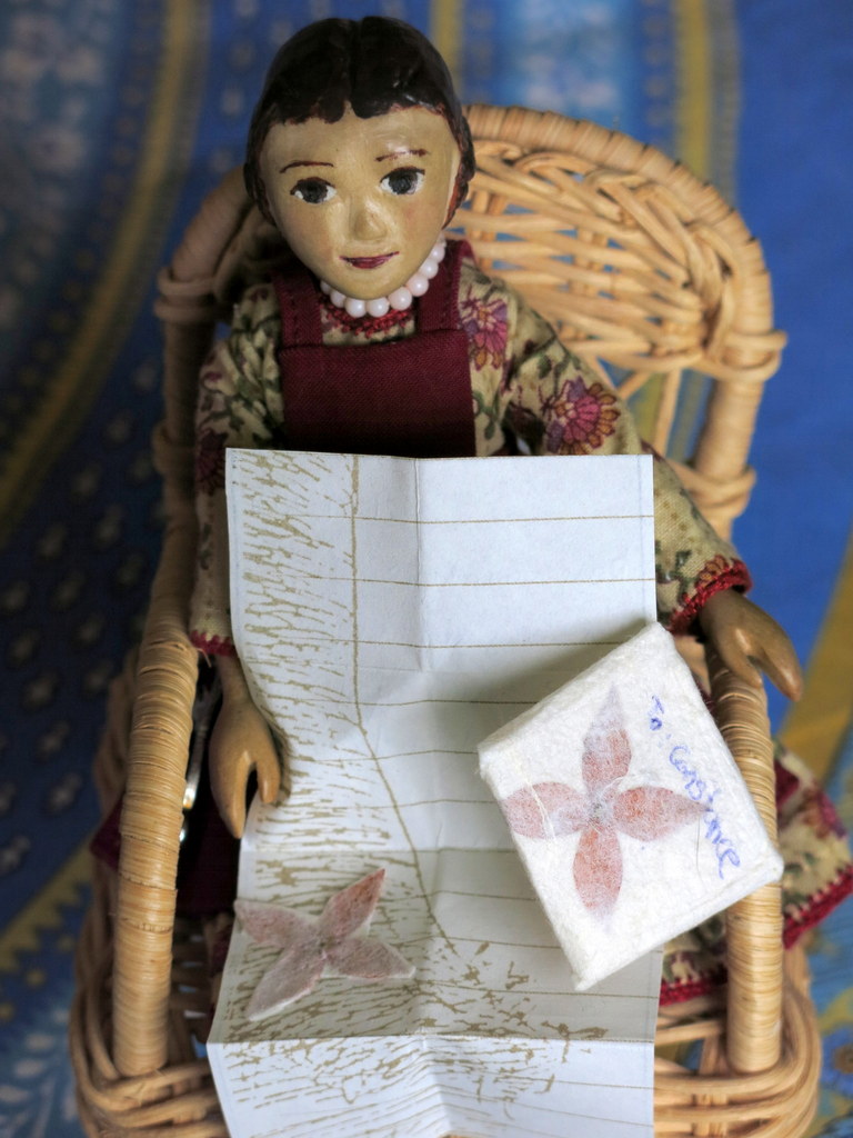 Constance was carved in 2007 while I was on vacation in Turkey, I finished her when I was in Istanbul (formerly called Constantinople, which is why I named her Constance). She recently received a packet of beautiful things from a Hitty friend who lives in Istanbul!