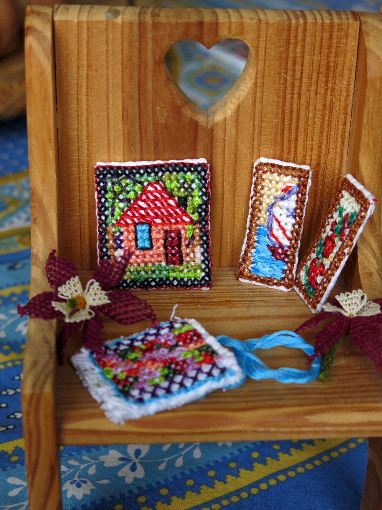 Three wall hangings were embroidered on the cloth – I attached them to some Acid-free card…aren’t they beautiful? A little cottage, a sailboat and we think some apples on the tree…such beautiful decorations. Our friend made a cute little shoulder bag too, which Constance will put to good use!