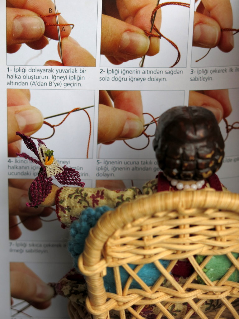Then she spent some time studying the book about Needle lace, which has lots of photos, ideas and instructions…