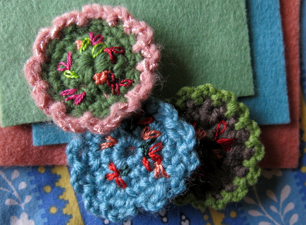 Three little crochet and embroidery pillow covers – so sweet and so pretty!