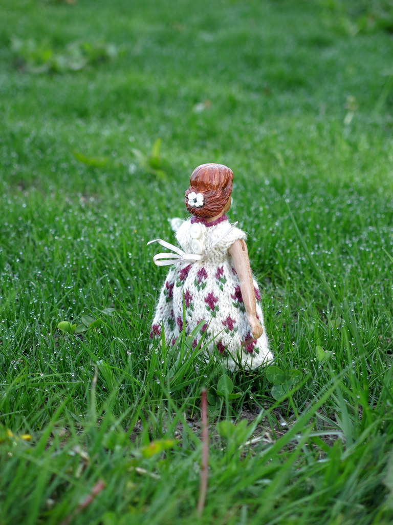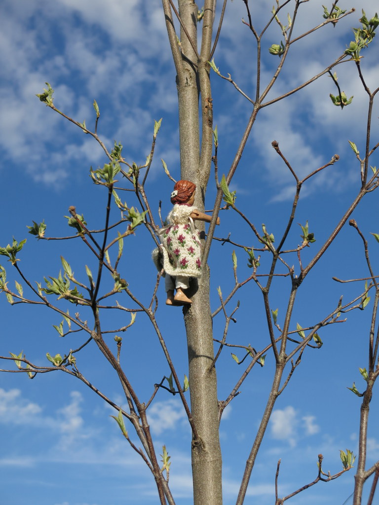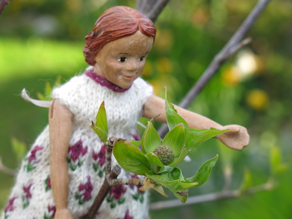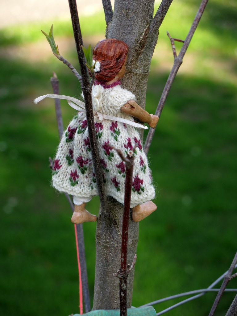 We think that the wooden dolls can talk to their own type of tree! Even if Floradora’s tree came from Arkansas and the newly planted ones were developed in Oregon!