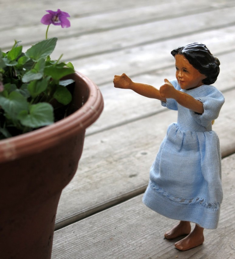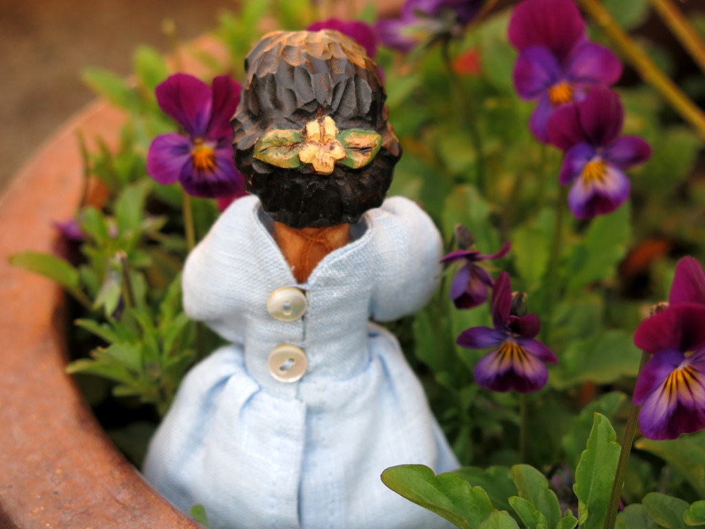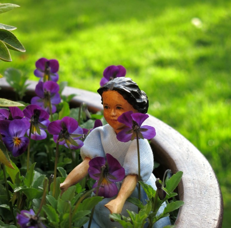 The little violet plant is eased into the ground, and watered. Viola’s heart is eased by being out in the beautiful spring morning, and by thinking of friendships near and far.