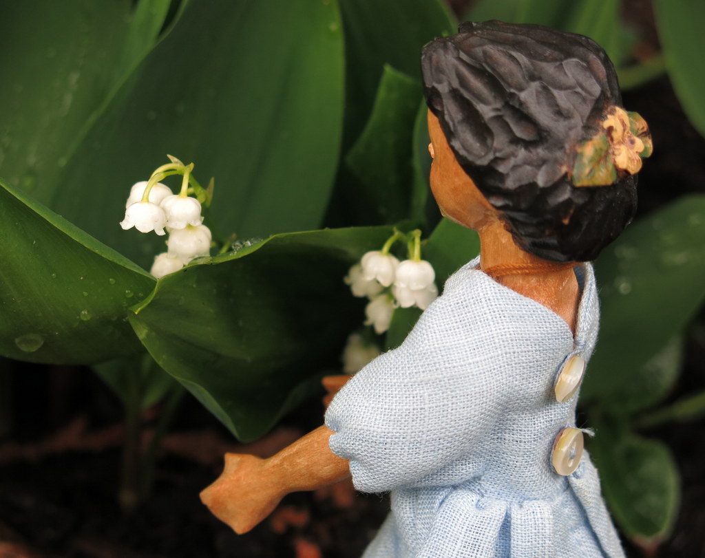 She’s a little sweetheart…and so are the sweet Lily-of-the-valley flowers! It is so nice to be able to collect a few for our bouquet at last!