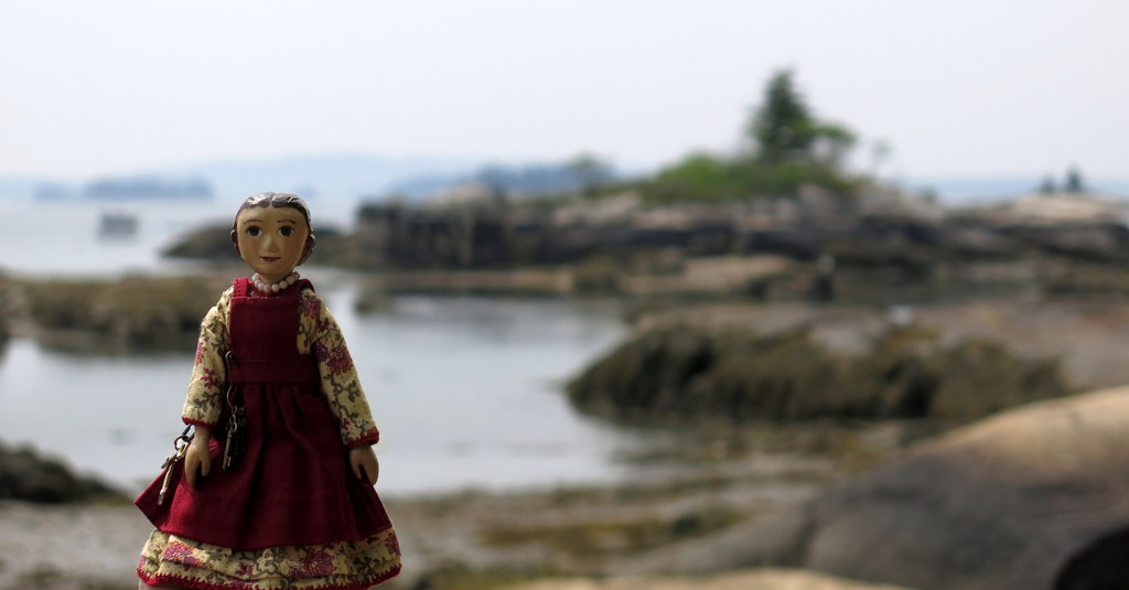 The dolls and humans flew to Montreal and then bussed to a friends home. The next day we drove through northern Vermont, New Hampshire and all the way to the Atlantic coast of Maine…