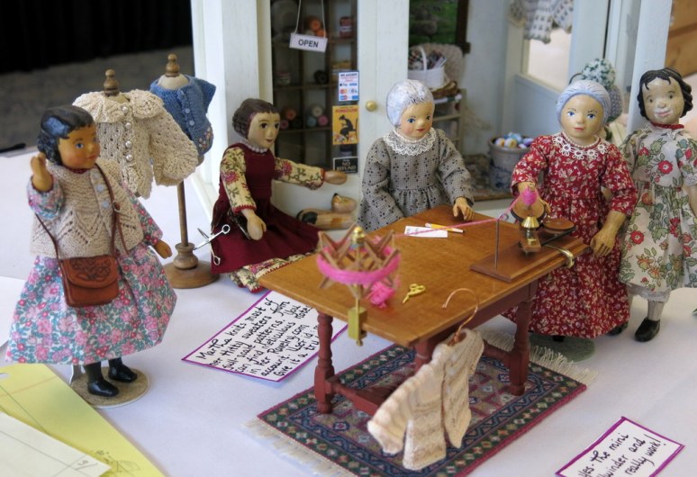 While in Castine, Constance and Mamie visited the 41st Annual Guild School of  the International Guild of Miniature Artisans  and their the wonderful Guild School Exhibit.  We were absolutely enthralled by Aunt Doll’s (absolutely wonderfully fantastic!) Yarn Shop…
