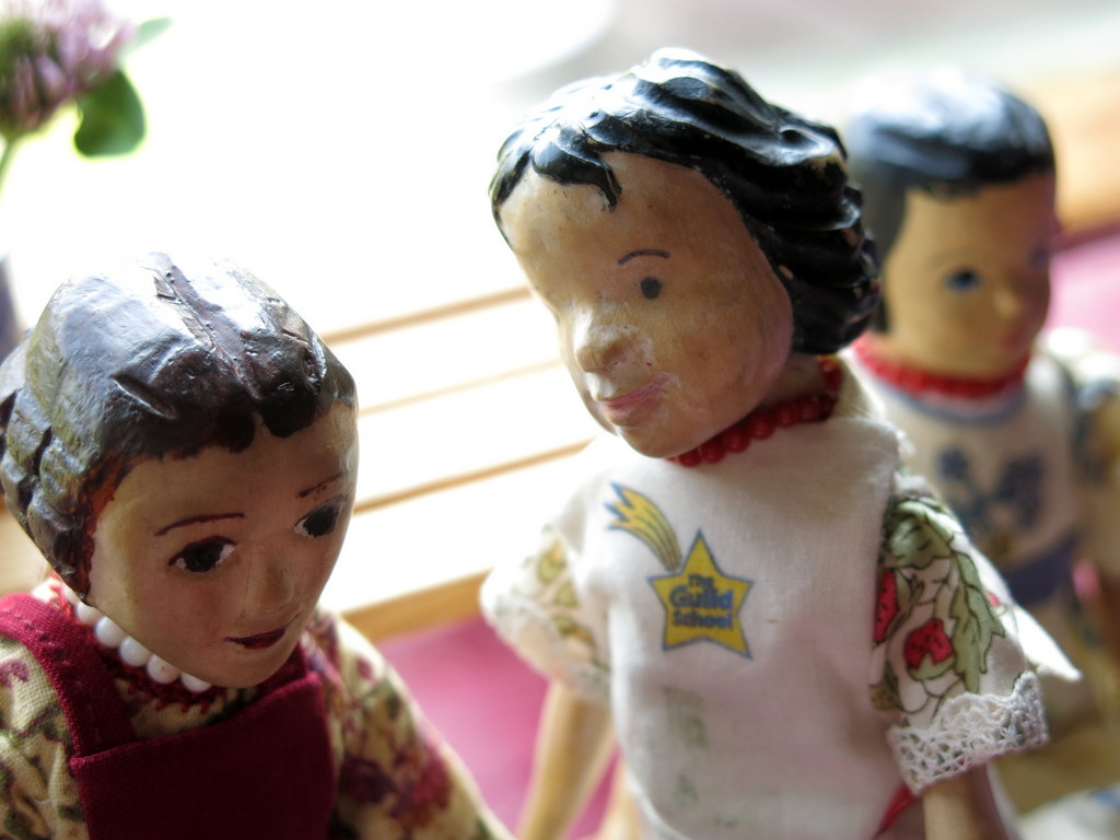 I am so happy you noticed the details! It makes it all worth it and puts a very big smile on my face! My father and I have really enjoyed coming up with ideas for the school exhibit every year. We have even recruited some new Hitty friends! Yippee! Aunt Doll’s knitting has been less than inspired of late. Yesterday, at the end of a round she was to have 80 stitches but alas, she had 92!