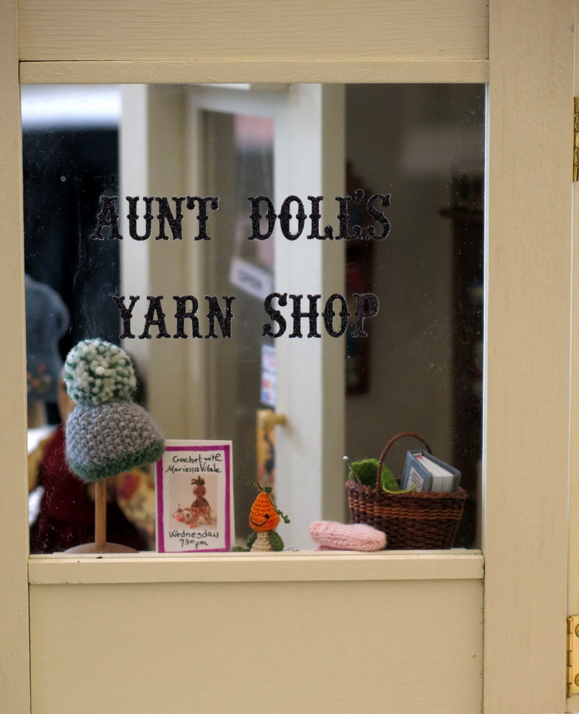 While in Castine, Constance and Mamie visited the 41st Annual Guild School of the International Guild of Miniature Artisans and their the wonderful Guild School Exhibit. We were absolutely enthralled by Aunt Doll’s (absolutely wonderfully fantastic!) Yarn Shop…